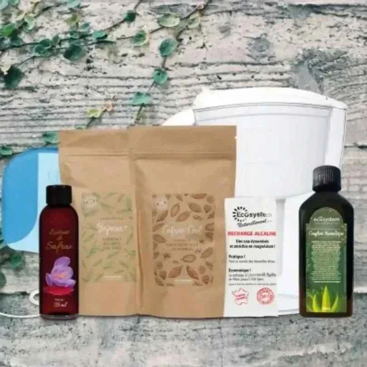 Des pierres, des bijoux en pierres, des produits à l’aloe vera, coffret en bois jeu détente.